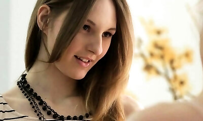 Romantic brunette barely legal Dusya flaunts her sweet assets