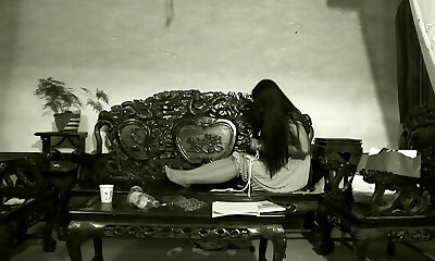 Naughty Asian women in prison camp with shaved pussy poking