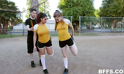 Wondrous football girls are fucked and jizzed by mischievous coach with big cock